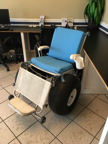 This resort has a beach accessible wheel chair for your use.