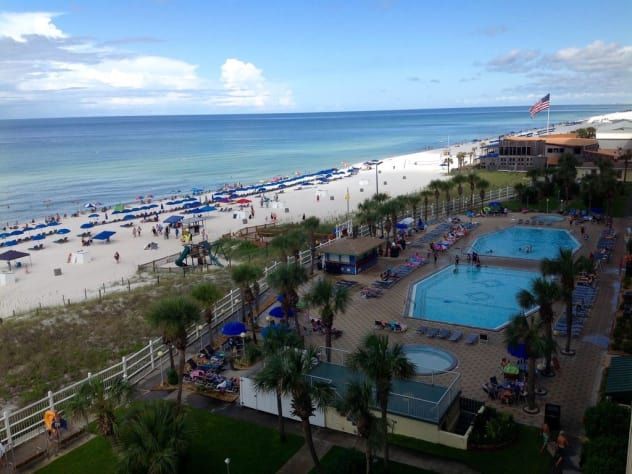 This condo has a private large balcony with a beautiful view of the sugar-white beach and the Gulf of Mexico, lovely morning sunrises and even better sunsets. The 3rd Floor condo is high enough for privacy (safer for children) - yet convenient to take stairs as an option to avoid waiting on the elevators !